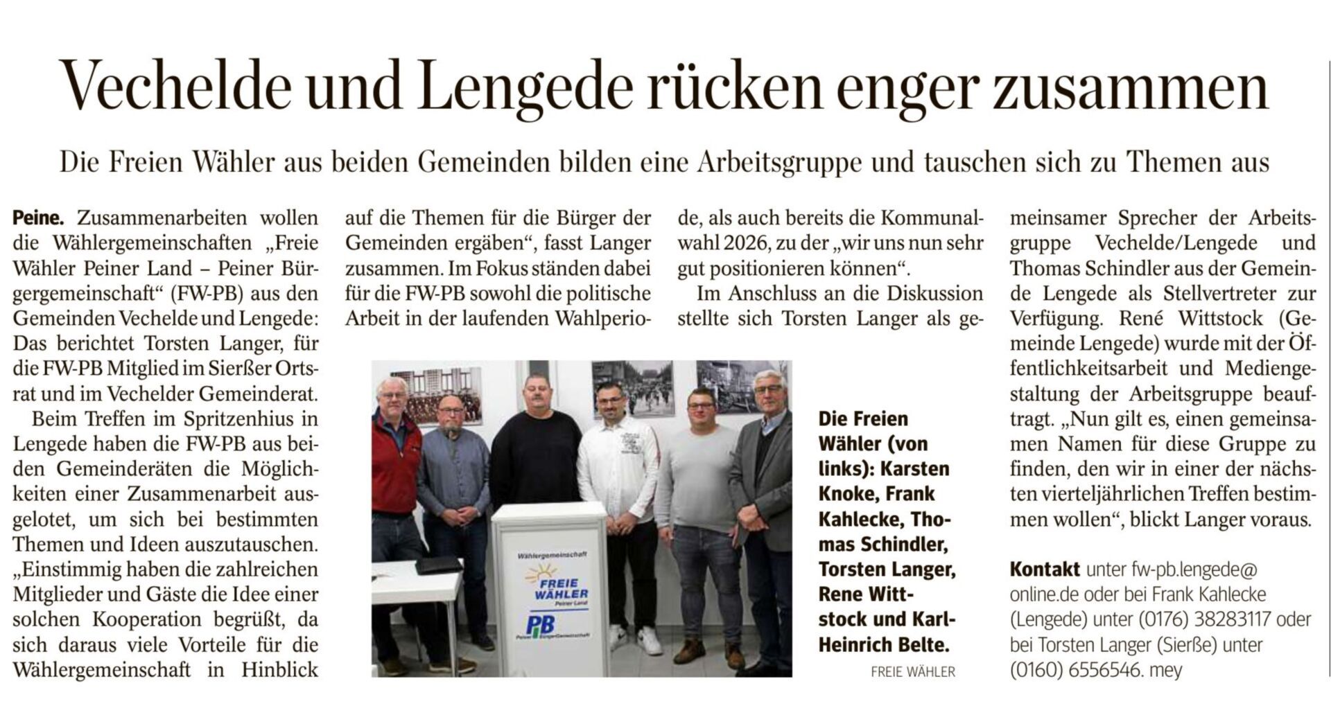 Im Rückblick auf das Jahr 2024 empfand ich die Zusammenarbeit mit der Ratsgruppe „CDU-Jaecker-PB“ erneut als sehr angenehm. Unsere Zusammenarbeit als Gruppe zeichnet sich durch eine hervorragende Kommunikation aus. Unsere Zusammenarbeit ist sehr sachkundig, harmonisch und hervorragend. Ich habe dem Haushaltsentwurf und die Verpflichtungsermächtigung im Haushalt 2025 zum Bau einer neuen Grundschule in der Gemeinde Vechelde zugestimmt. Ich finde es gut, dass ein Schwerpunkt auf die Instandhaltung der gemeindlichen Infrastruktur gelegt wurde. Denn in den letzten Jahrzehnten hat sich ein Sanierungsstau entwickelt. Ich bin erfreut, dass Mittel für die Errichtung einer Pumptrack-Anlage in den Haushaltsentwurf aufgenommen wurden. Auch Investitionen im Brandschutz wurden berücksichtigt. Die Grünpflege und Sauberkeit in der Gemeinde Vechelde begrüße ich sehr. Denn die Gemeinde Vechelde sollte grün und einladend sein. Ich bedanke mich bei der Verwaltung für die angenehme Zusammenarbeit im Jahr 2024. Torsten Langer